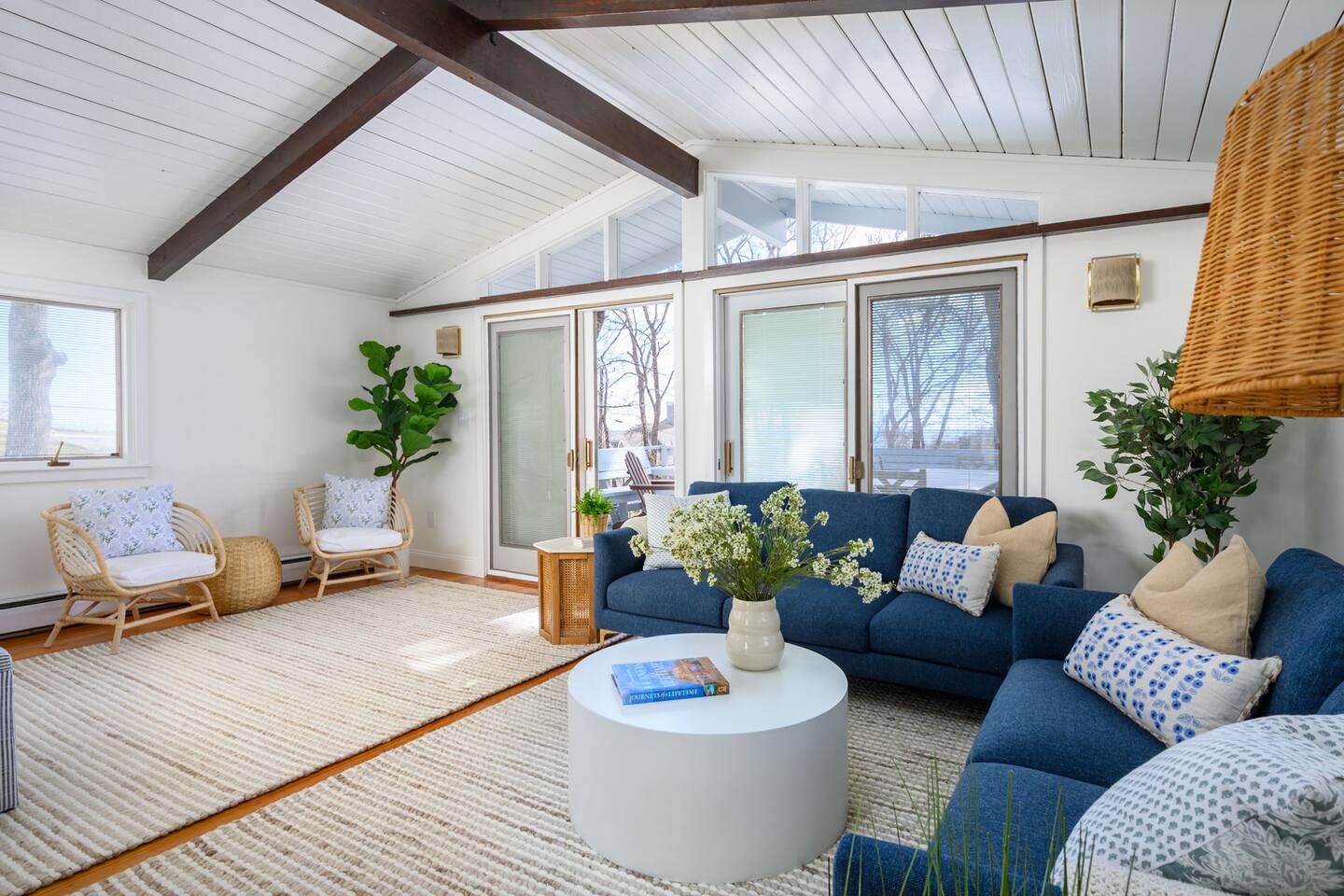 Wake up to sweeping ocean views in this luxury designer home in historic Plymouth, MA. Just a 5 minute walk to a private sandy beach, this retreat is perfect for families and remote workers. Comfortably sleeps 7. Enjoy a fire pit, mini-golf green, and easy access to Cape Cod and premier golf courses. Your ultimate coastal getaway awaits!
